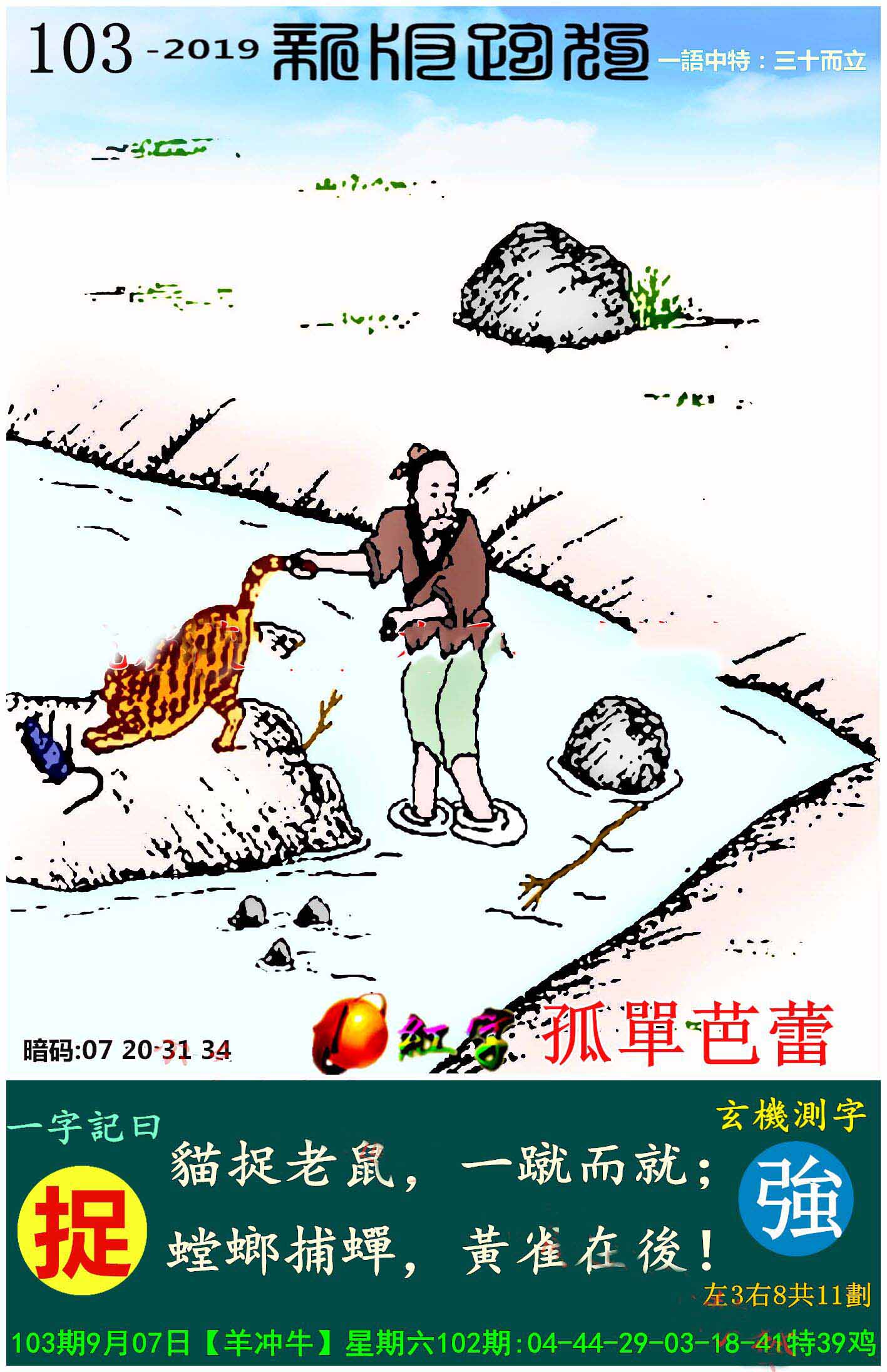 103期:新版跑狗一字記之曰【捉】玄機測字:《強》