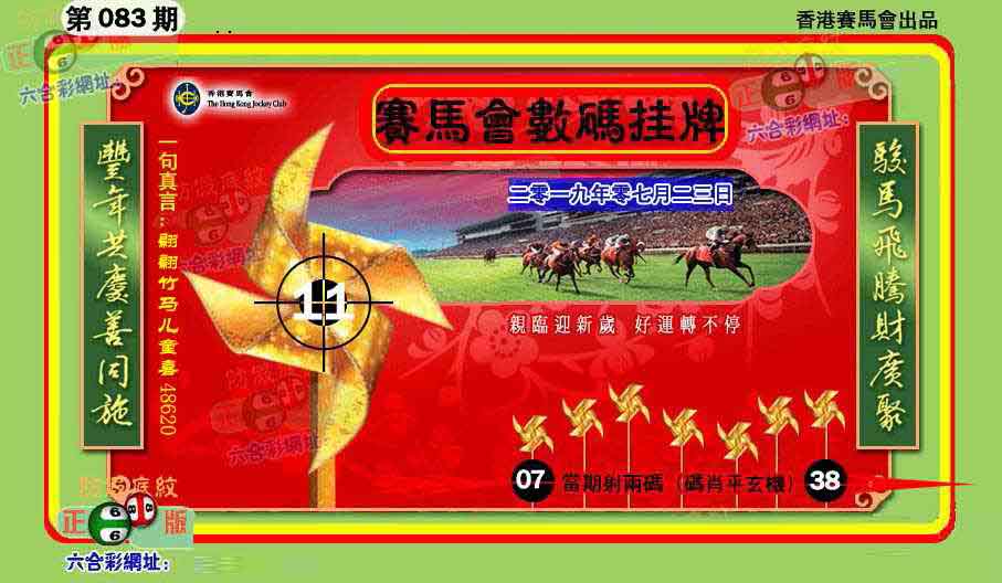 083期开奖时间2019年07月23日(星期二)晚9:30开(农历六月廿一 鸡冲兔)